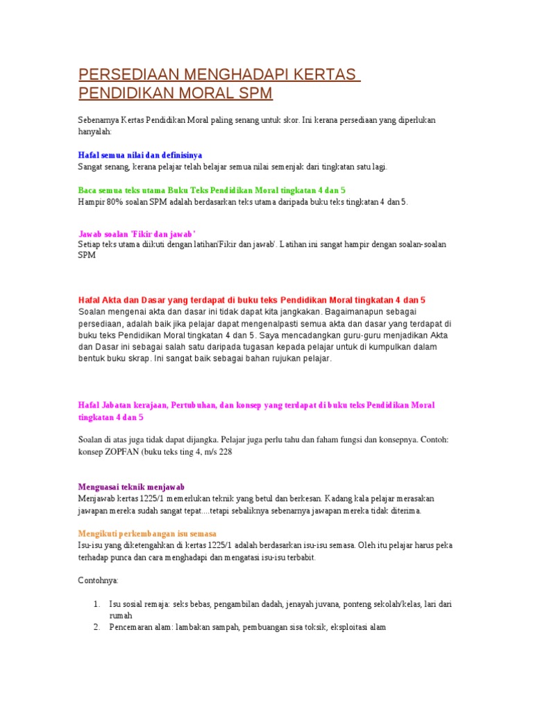 Format Terkini Untuk Soalan Esei Pendidikan Moral Spm Docx