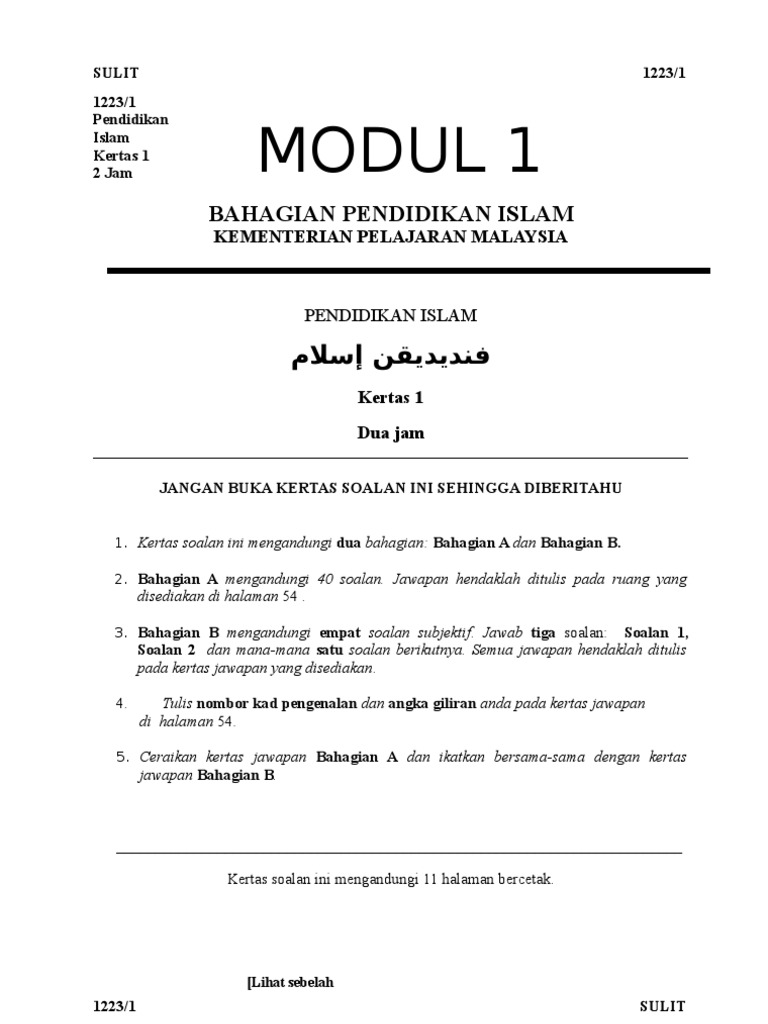 Modul Pendidikan Islam Soalan Spm Kertas1 Set 1