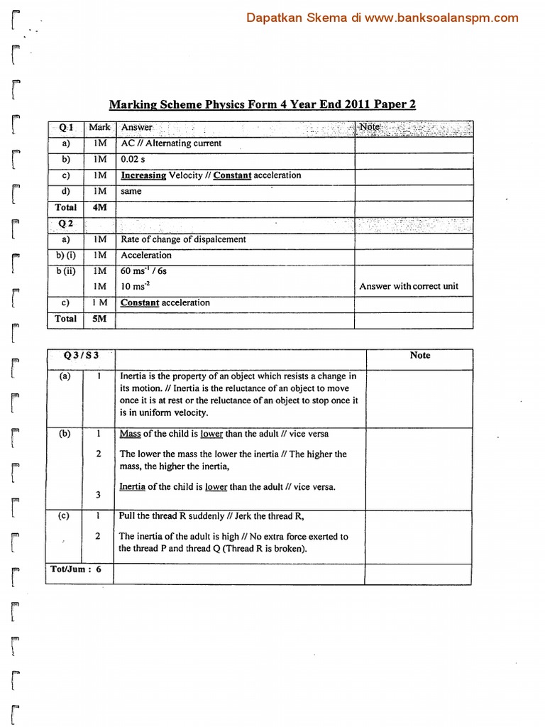 Jawapan Peperiksaan Akhir Tahun 2011 Sbp Fizik Tingkatan 4