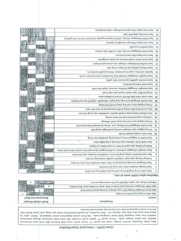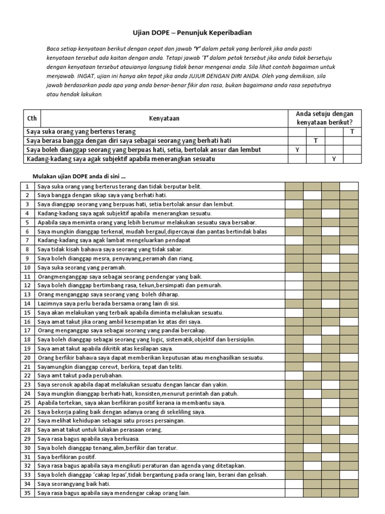 Ujian Dope Docx Ujian Dope Personalit Baca Setap Kenyaan Berikut Dengan Cepat Dan Jawab Y Dalam Petak Yang Tdak Berlorek Jika Anda Past Kenyataan Course Hero