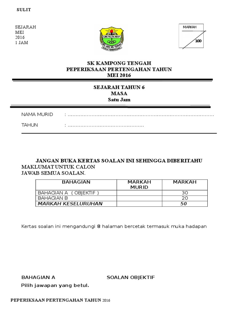 Ujian Akhir Tahun Sejarah Tahun 6 Sumber Pendidikan