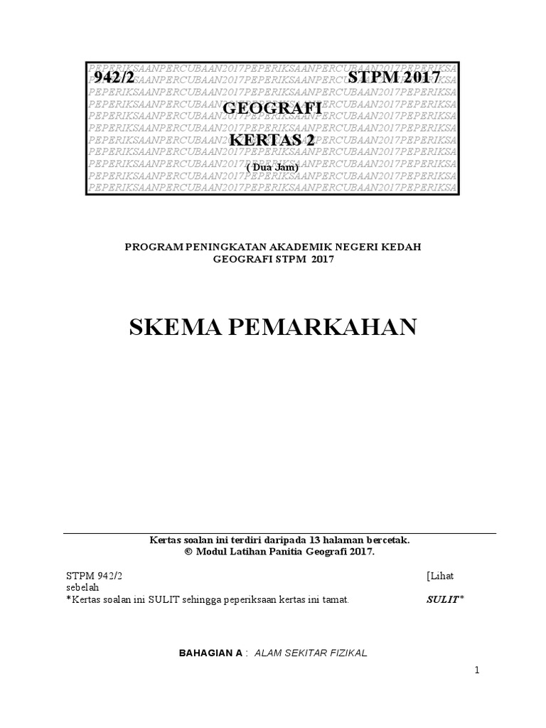 Skema Percubaan Geografi Penggal 2 Stpm 2017 Kedah Doc