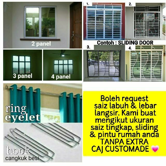 Curtain Langsir Slidingdoor Slimming Tingkap Thick Fabric Eyelet Bended Dawai Shopee Singapore