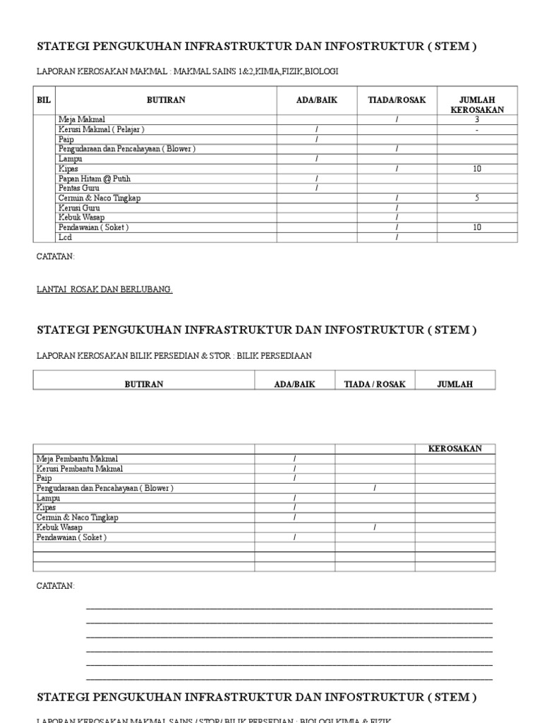 Buku Log Kerosakan Makmal Sains Makmal Sekolah Maahad Tahfiz Sains Bustanul Arifin Tumpat Borang Kebenaran Membawa Keluar Peralatan Makmal Bengkel Uus Niama