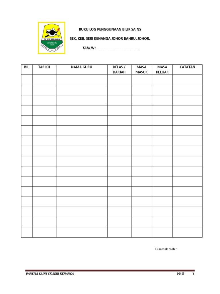 Buku Log Penggunaan Makmal Sains