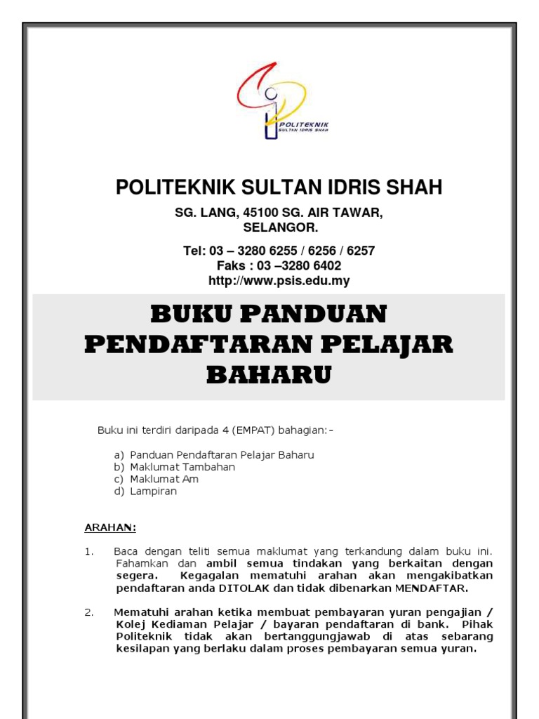 Buku Panduan Pendaftaran Pelajar Baru Politeknik Sultan Idris Shah