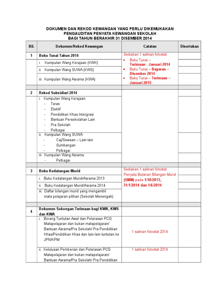 Dokumen Dan Rekod Kewangan Yang Perlu Dikemukakan