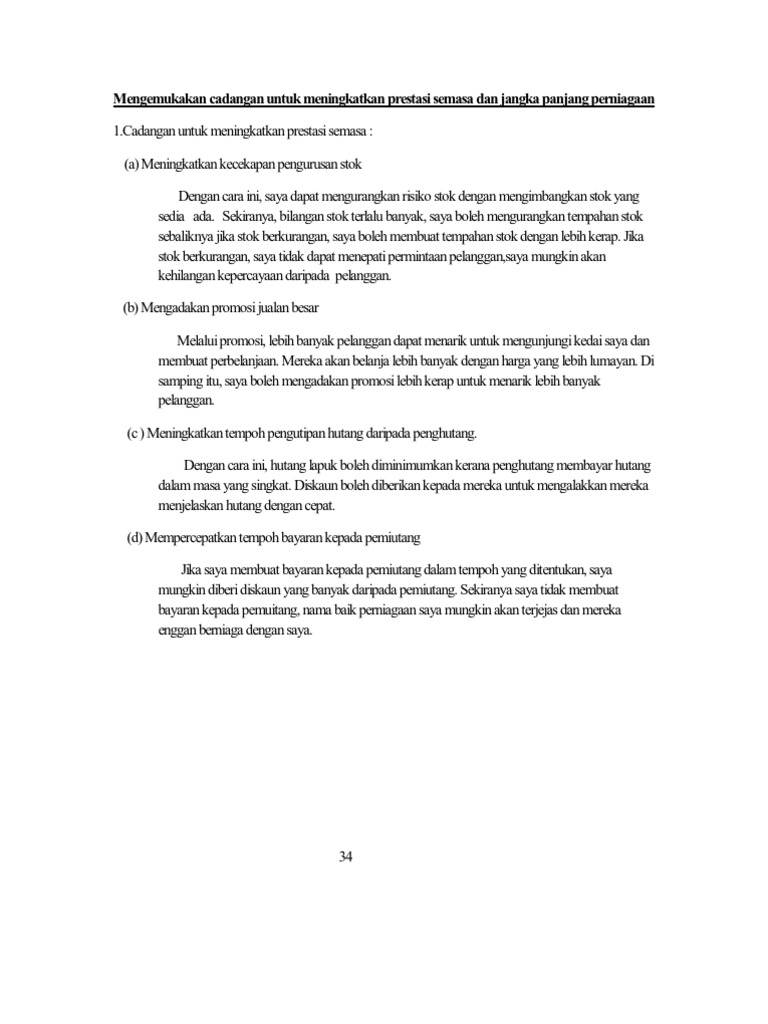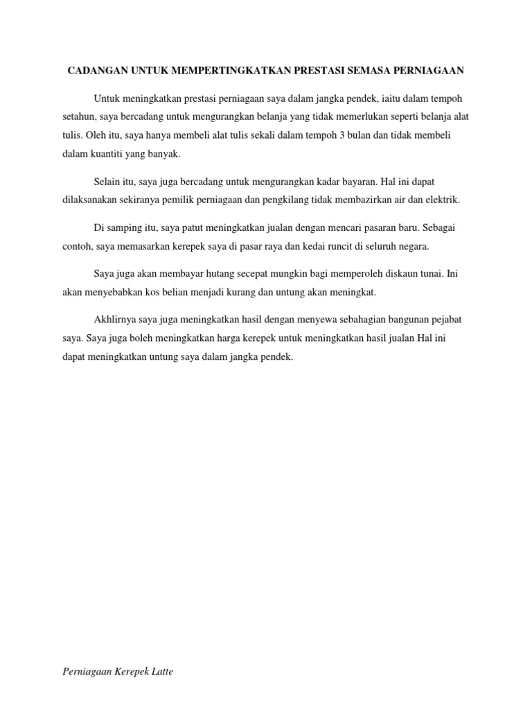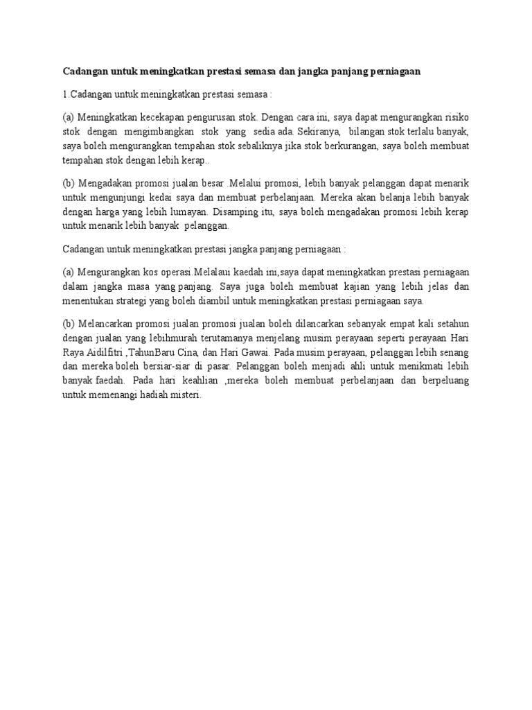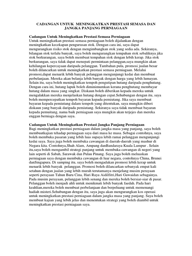 Cadangan Untuk Meningkatkan Prestasi Semasa Dan Jangka Panjang Perniagaan Adalah