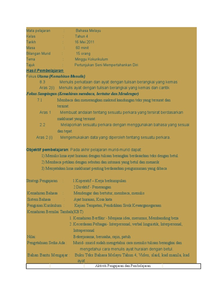 Contoh Rph Bm Tahun 4 Tulisan Berangkai