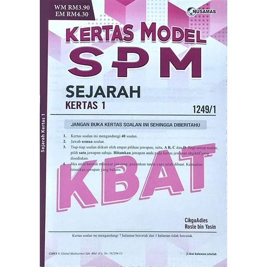 Kertas Model Spm Sejarah 2020 Kertas 1 Shopee Singapore