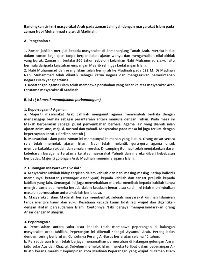 Doc Contoh Jawapan Esei Ciri Ciri Zaman Jahiliah Mohd Asri Omar Academia Edu