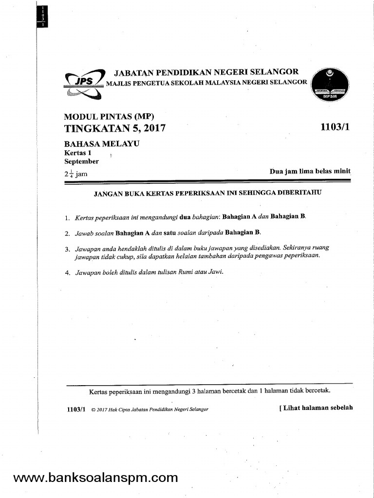Kertas 2 Pep Percubaan Spm Selangor 2017 Soalan