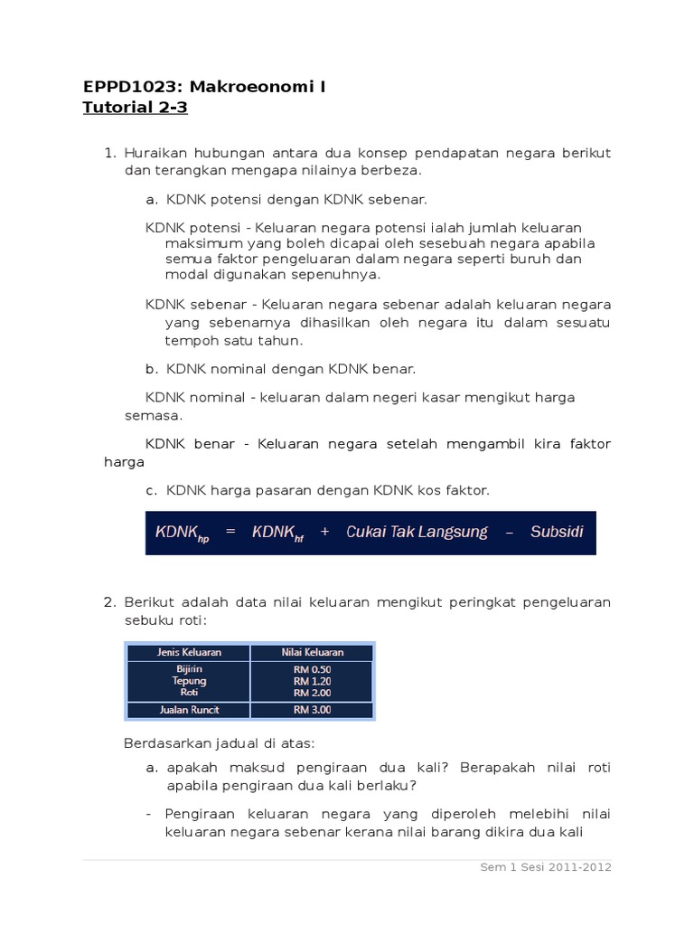 Kehidupan Keluarga Am R Jawapan Makroekonomi Tutorial 2 3