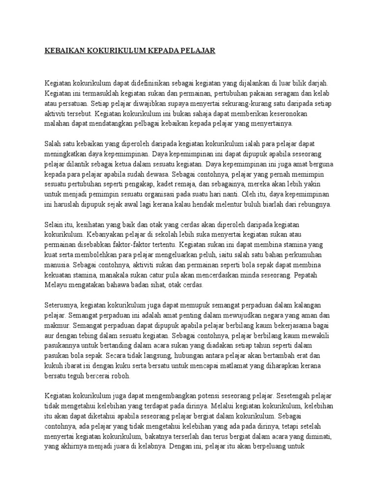 Kepentingan Kokurikulum Dalam Pendidikan Di Sekolah Menengah Studocu