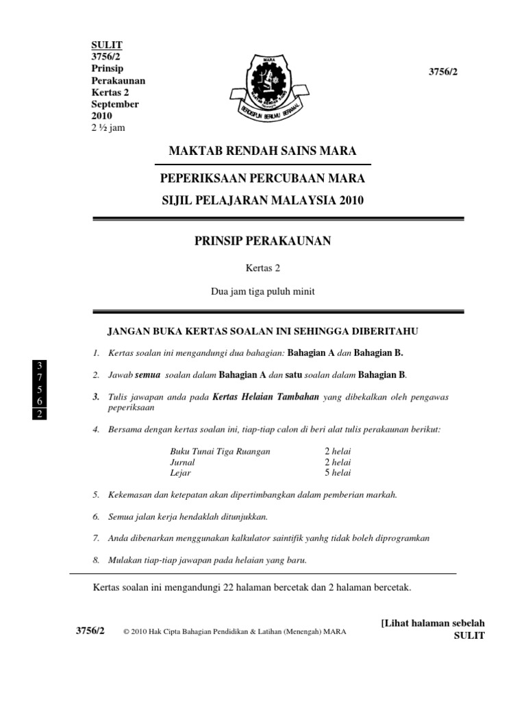 Prinsip Perakaunan Kertas 2 Spm Mrsm 2010