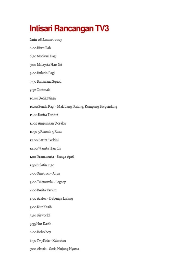 Senarai Rancangan Menarik Tv3 Syawal 2013