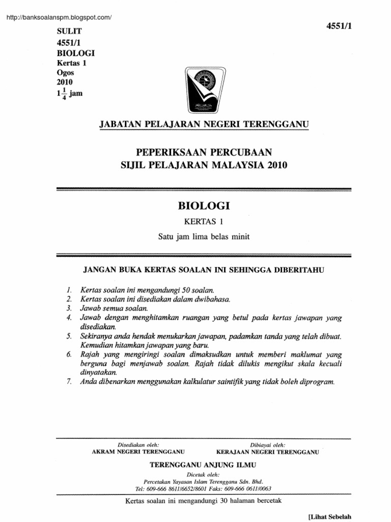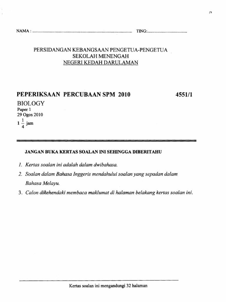 Perlis Trial Spm Biology 2010 Skema Pdf Document