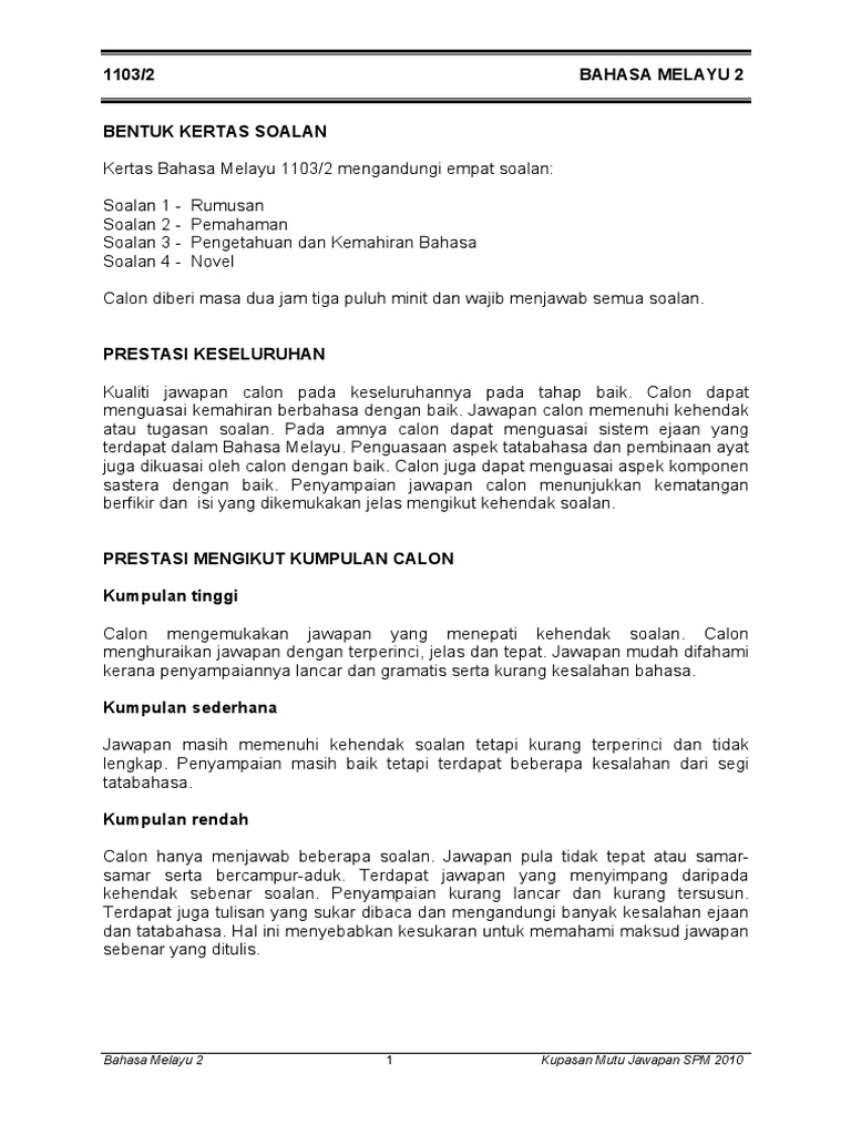 Bahasa Melayu K2 Spm 2010 Kupasan Mutu Jawapan Calon