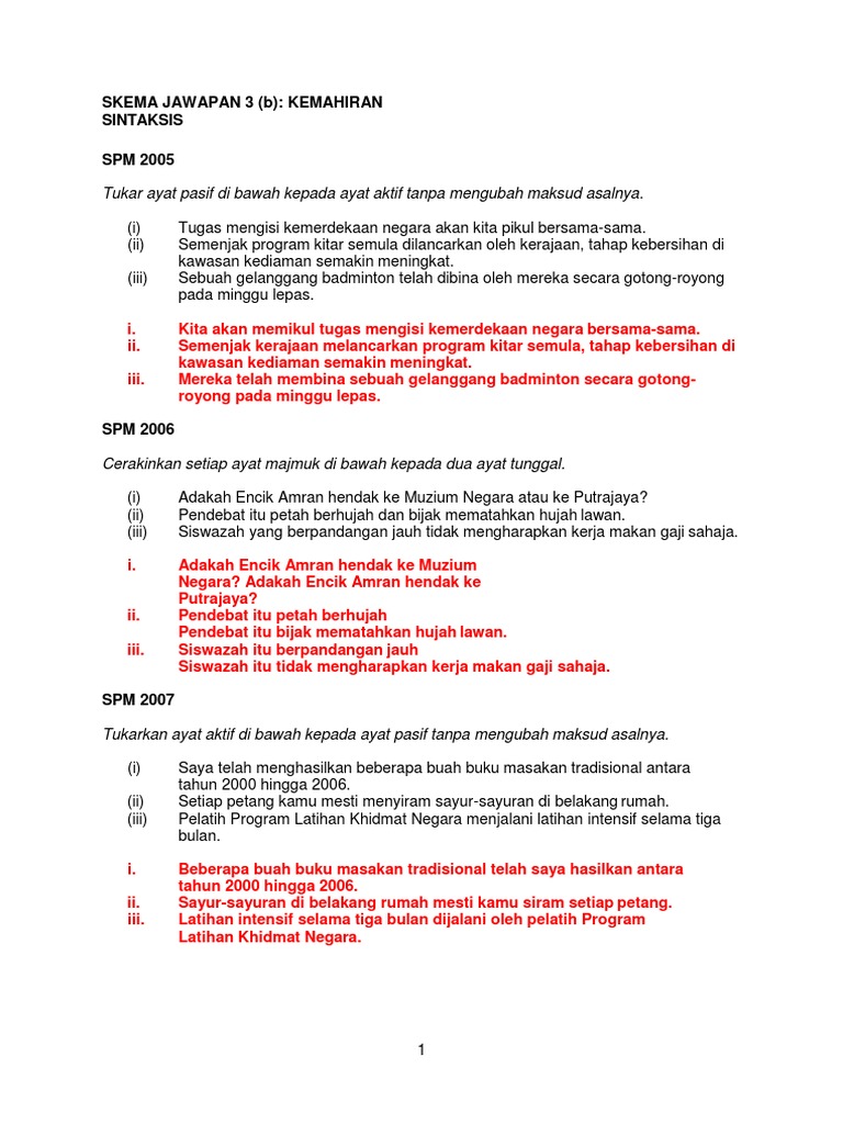 Kompilasi Soalan Spm 3b Jawapan Pdf Http Cikgusazali Blogspot Com Soalan 3 B Spm 2005 Kemahiran Sintaksis Tukar Ayat Pasif Di Bawah Kepada Ayat Aktif Course Hero