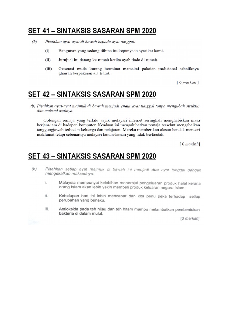 Set 41 60 Sintaksis Sasaran Spm 2020 Pisahkan Ayat Atau Cerakinkan Ayat Pdf