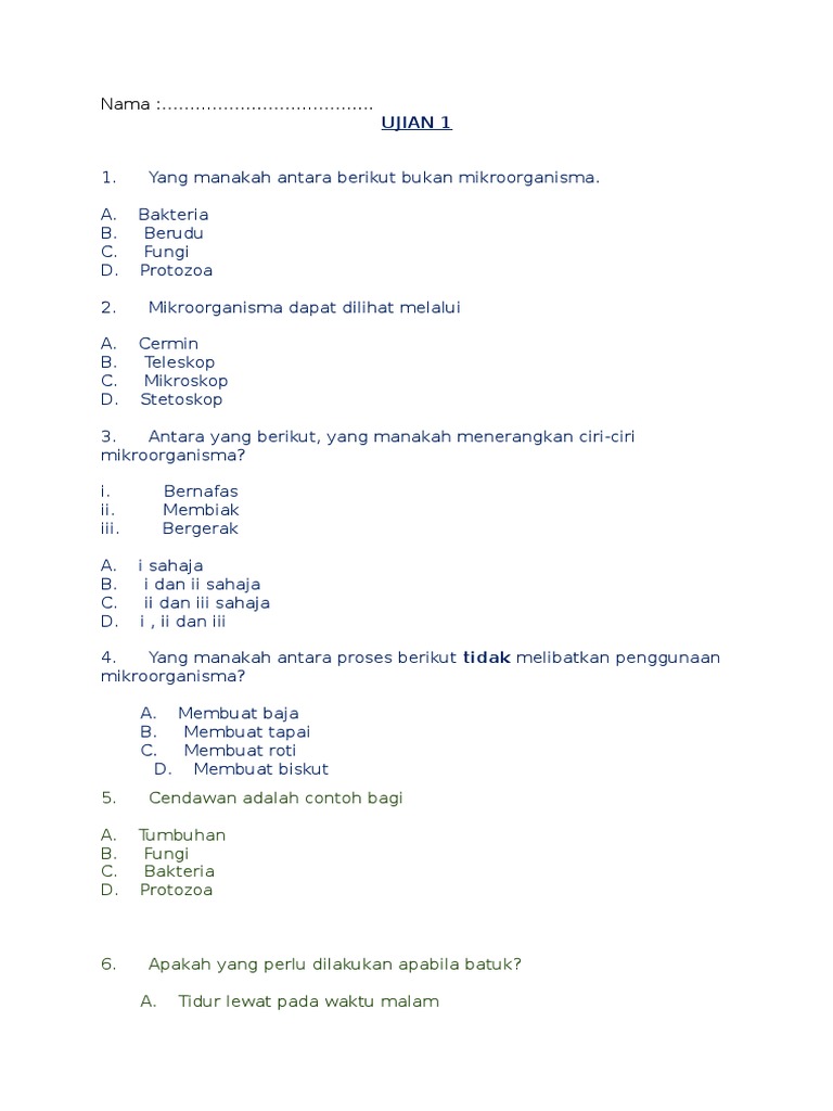 Soalan Sains Mikroorganisma Tahun 6 Berserta Jawapan
