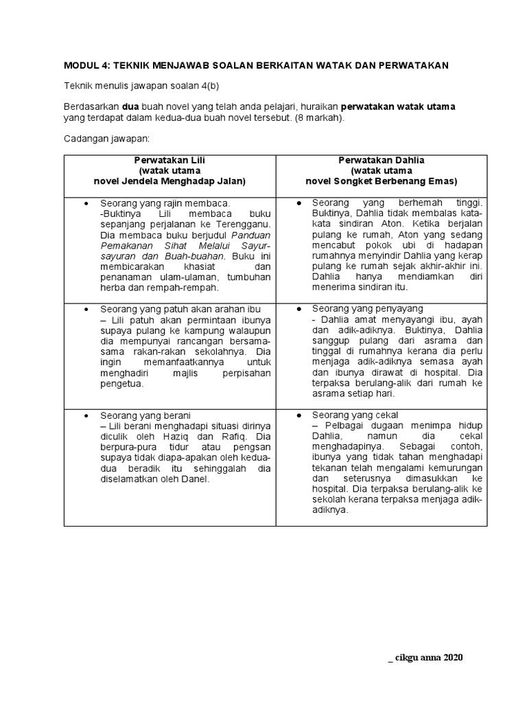 Blog Cikgu Azaman Teknik Menjawab Soalan Watak Perwatakan Novel