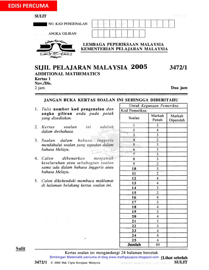 Add Maths Sebenar Spm 2005 Standardized Tests Student Assessment And Evaluation