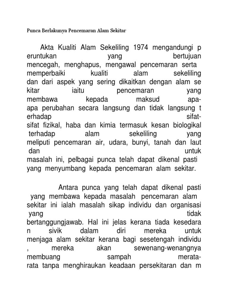 Punca Berlakunya Pencemaran Alam Sekitar