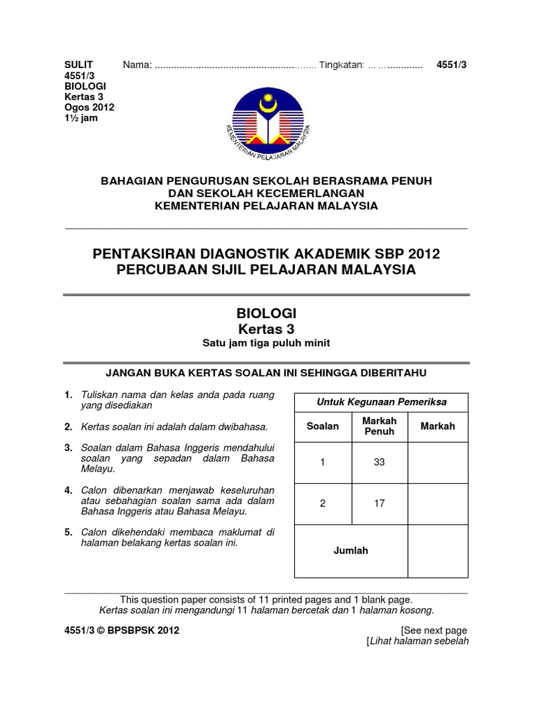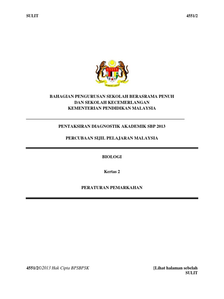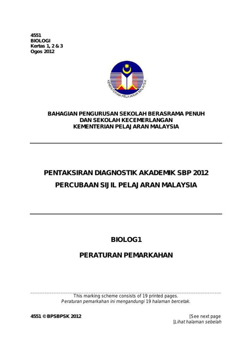 Http Banksoalanspm Com Downloads Trialsbp2012 Skema Biologi 20kertas 201 20percubaan 20spm 20sbp 202012 Pdf