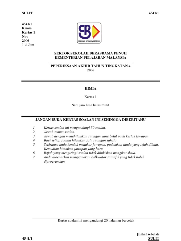 Kimia Paper 1 F4 Sbp Akhir 06 1 Acid Chemical Compounds