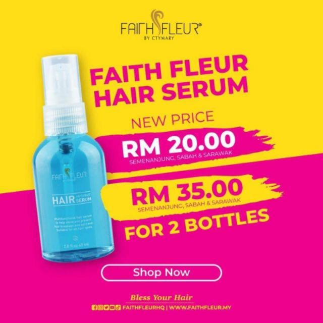 Serum Rambut Faith Fleur New Formula Rambut Gugur Kelemumur Nipis Uban Kutu Botak