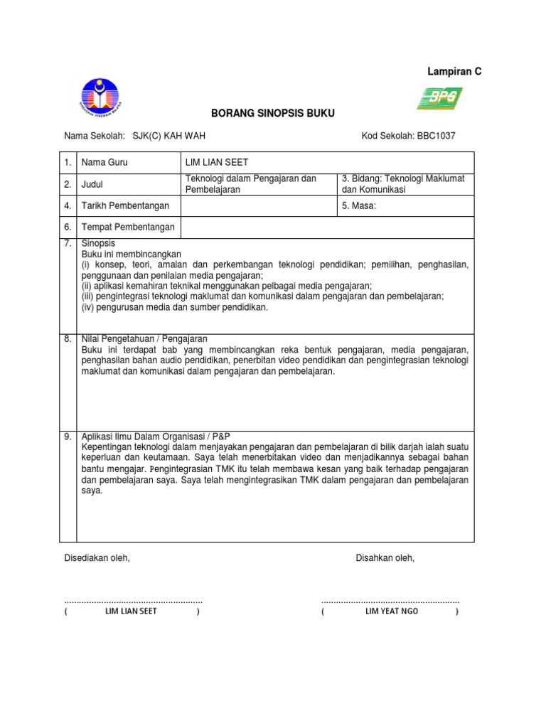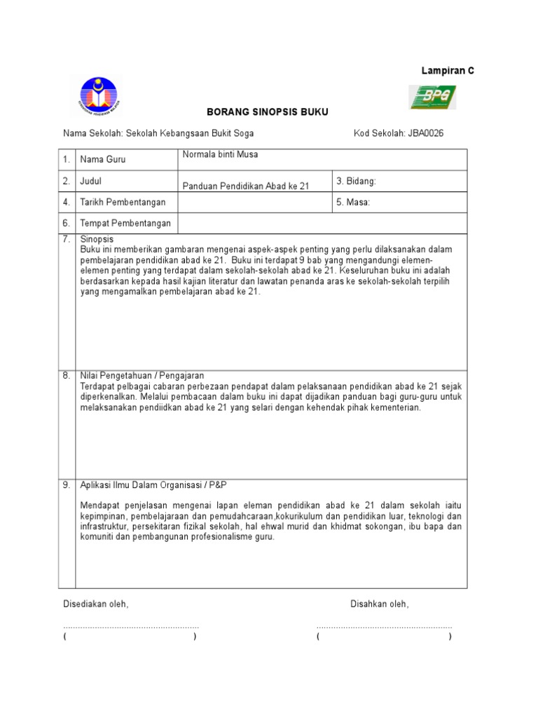 Borang Sinopsis Buku Untuk Guru