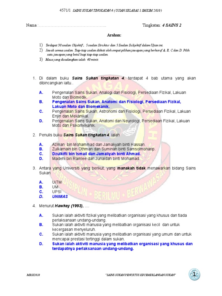 12 Soalan Sains Sukan Tingkatan 4 Kssm Pictures Sukangallery