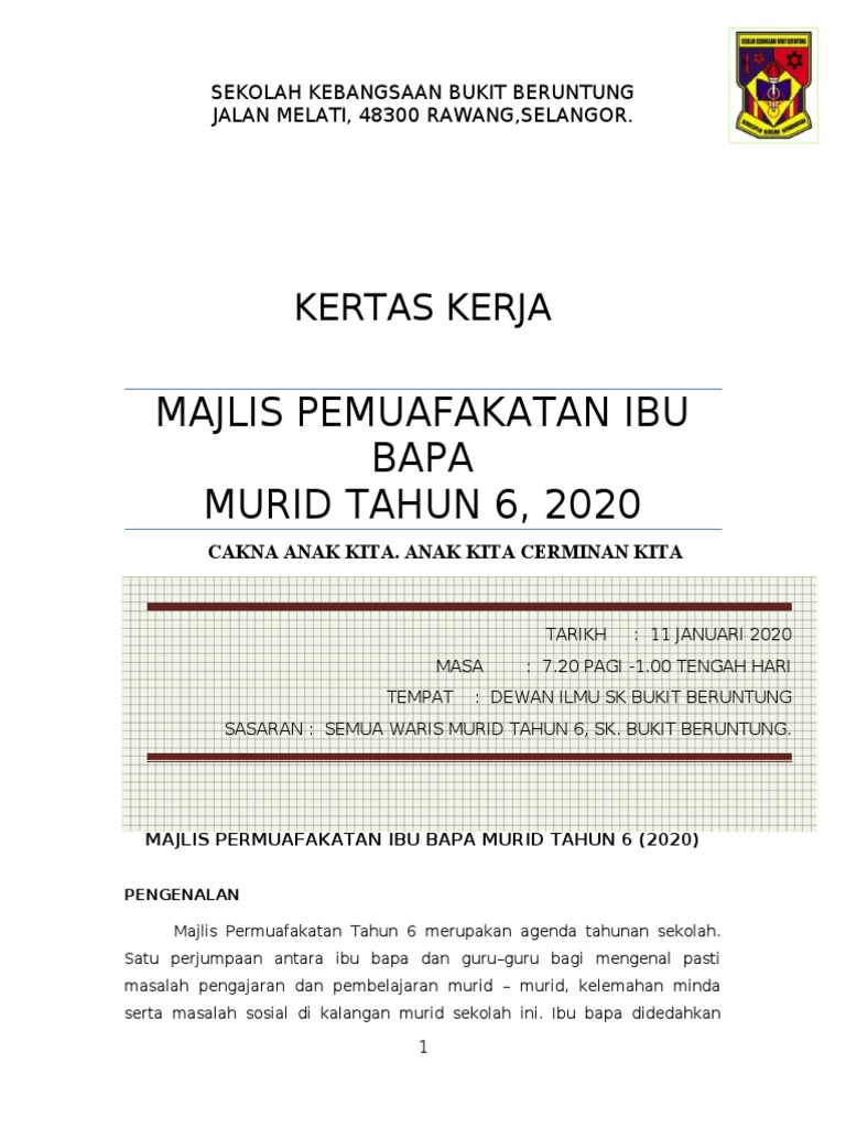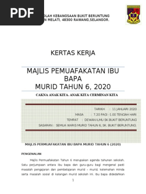 Kertas Kerja Majlis Pemuafakatan Ibu Bapa Murid Tahun 6 2020