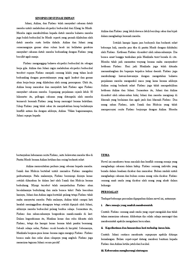 Persoalan Destinasi Impian Novel Tingkatan 1