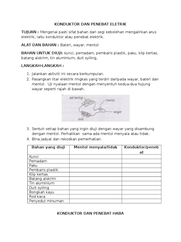 Eksperimen Konduktor Dan Penebat Eletrik Docx
