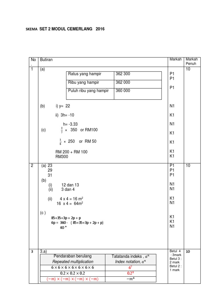 Matematik Modul Cemerlang Pt3 2016 Set 3 Jppp Skema Pdf