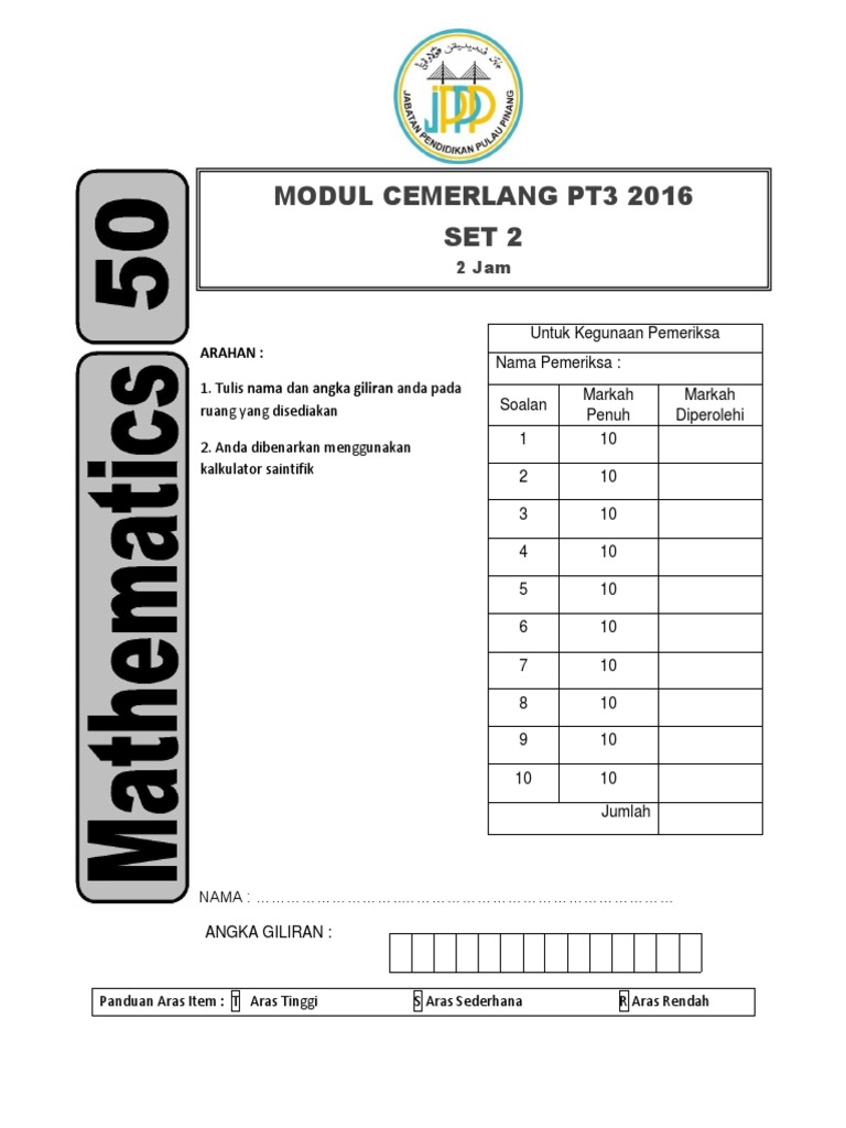 Matematik Modul Cemerlang Pt3 2016 Set 1 Jppp Soalan