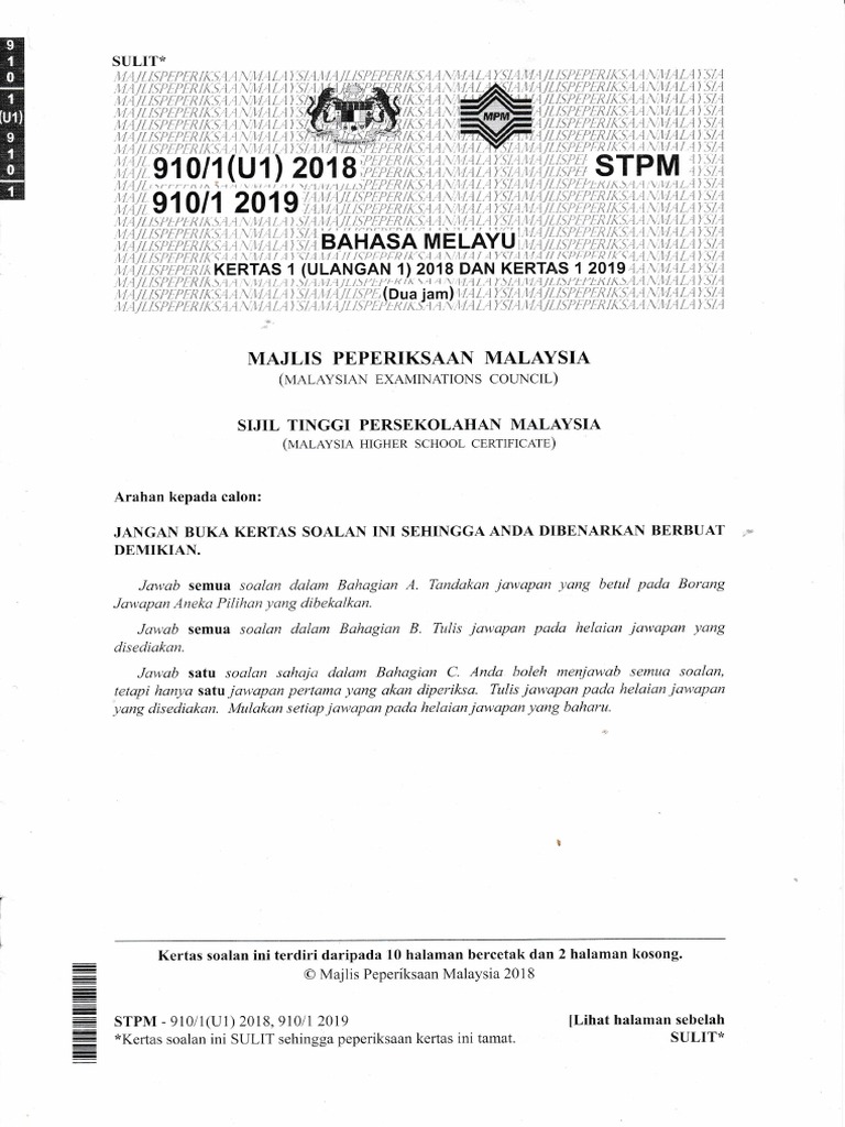 Jawapan Objektif Stpm Bahasa Melayu 2018
