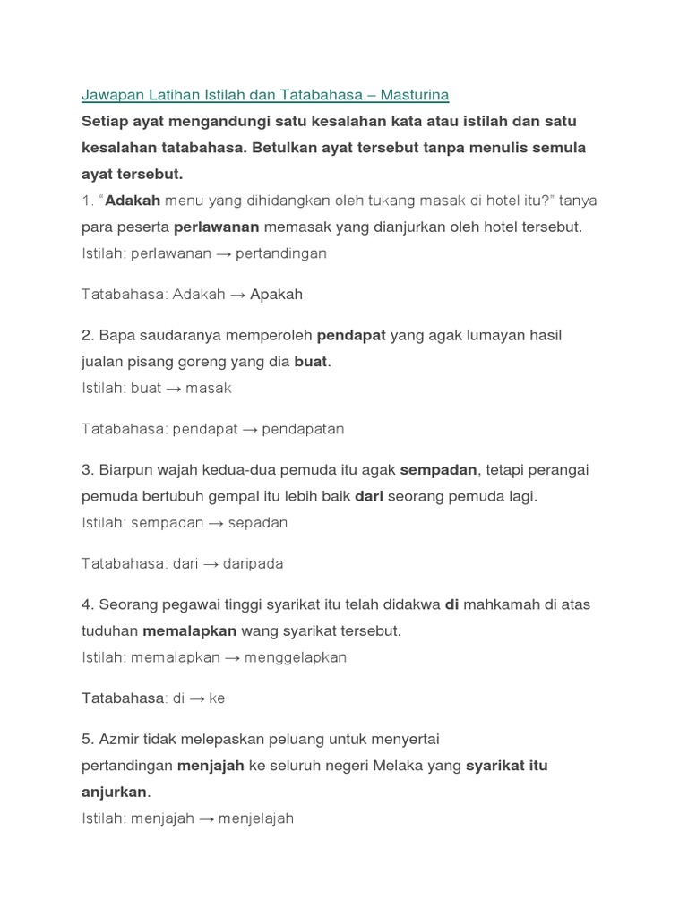 Jawapan Latihan Istilah Dan Tatabahasa Docx