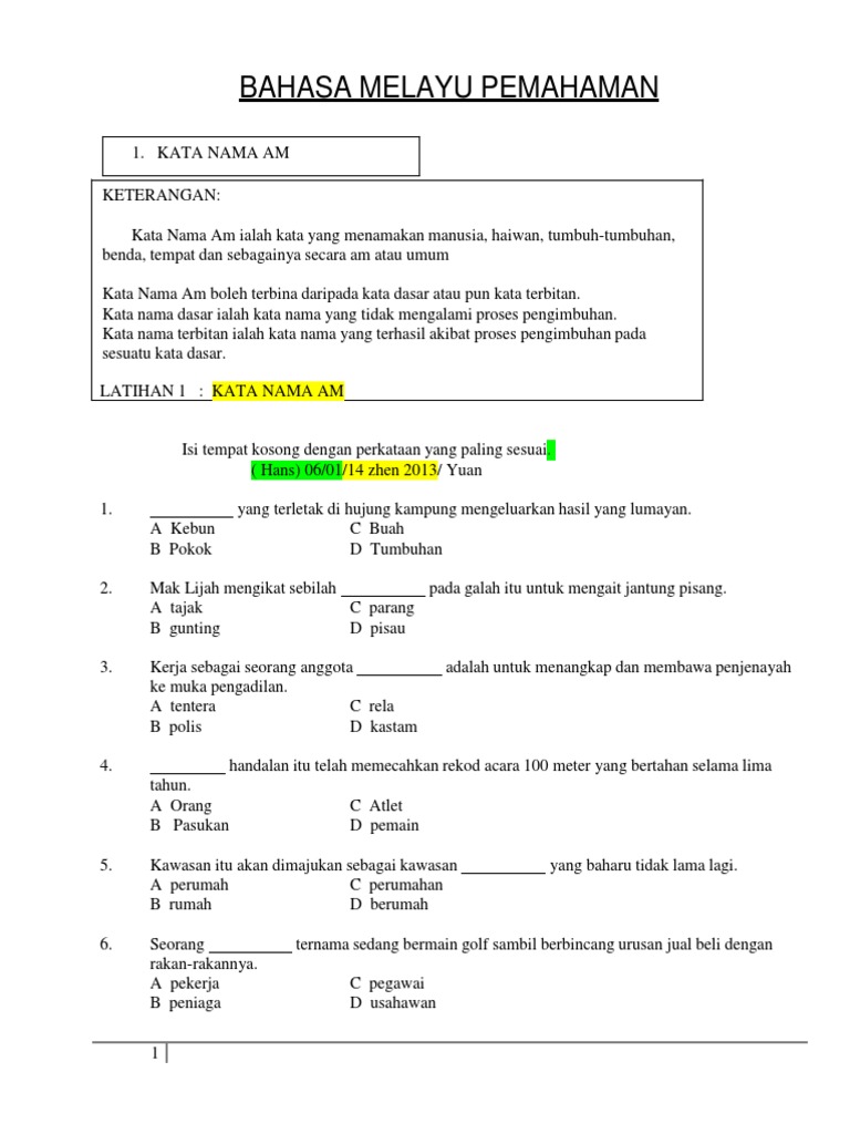 Latihan Tatabahasa Bm Tingkatan 1