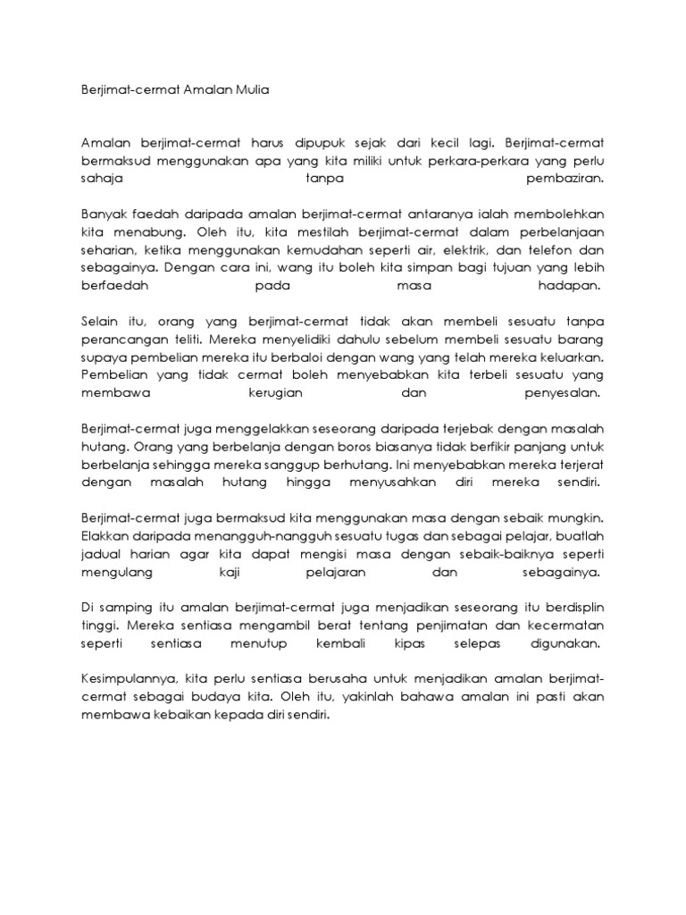 Doc Fakta Berjimat Cermat Amalan Mulia Norhazrina Mohamad Shari Academia Edu