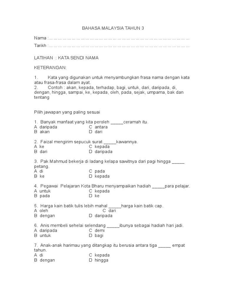 Latihan Tatabahasa Frasa Kerja Frasa Adjektif Dan Frasa Sendi Nama Tingkatan 3 Docx