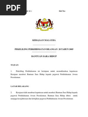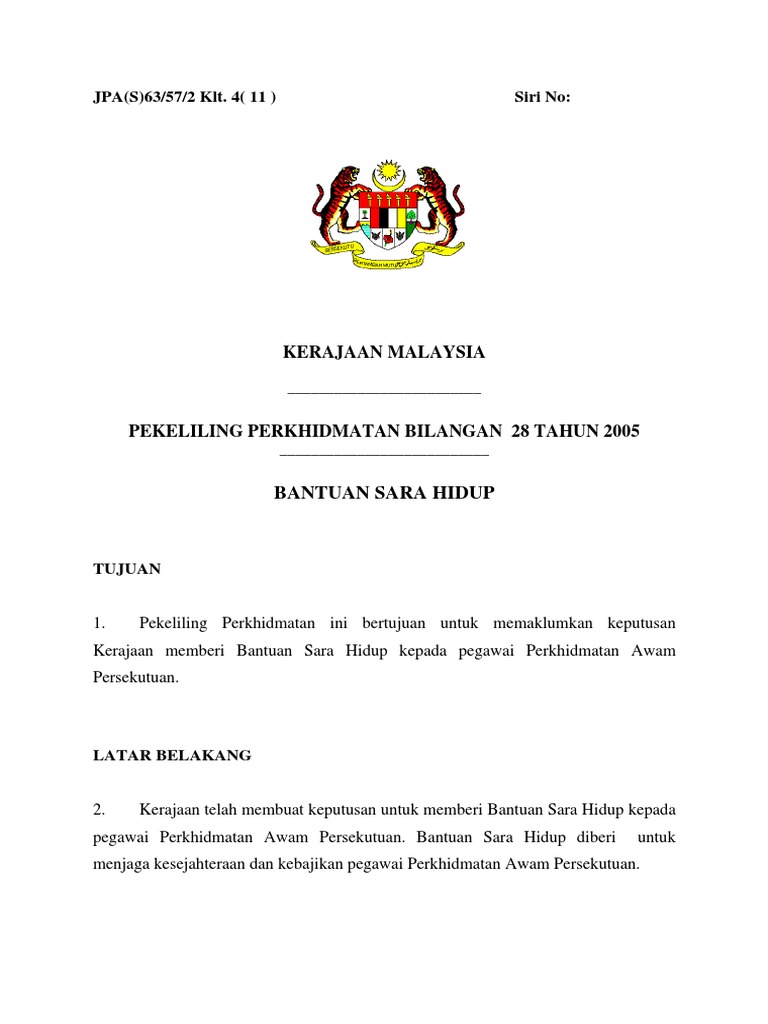 Pb Bil 01 2007 Pekeliling Penjelasan Mengenai Bantuan Sara Hidup Pekeliling Perkhidmatan Bil 28 Tahun 2005