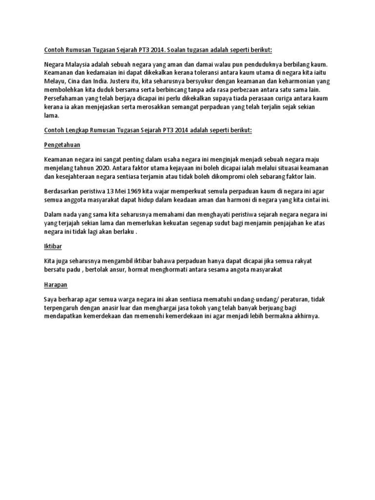 Contoh Rumusan Tugasan Sejarah Pt3 2014