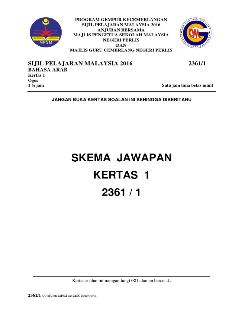 Skema Jawapan Bahasa Arab Spm 2016