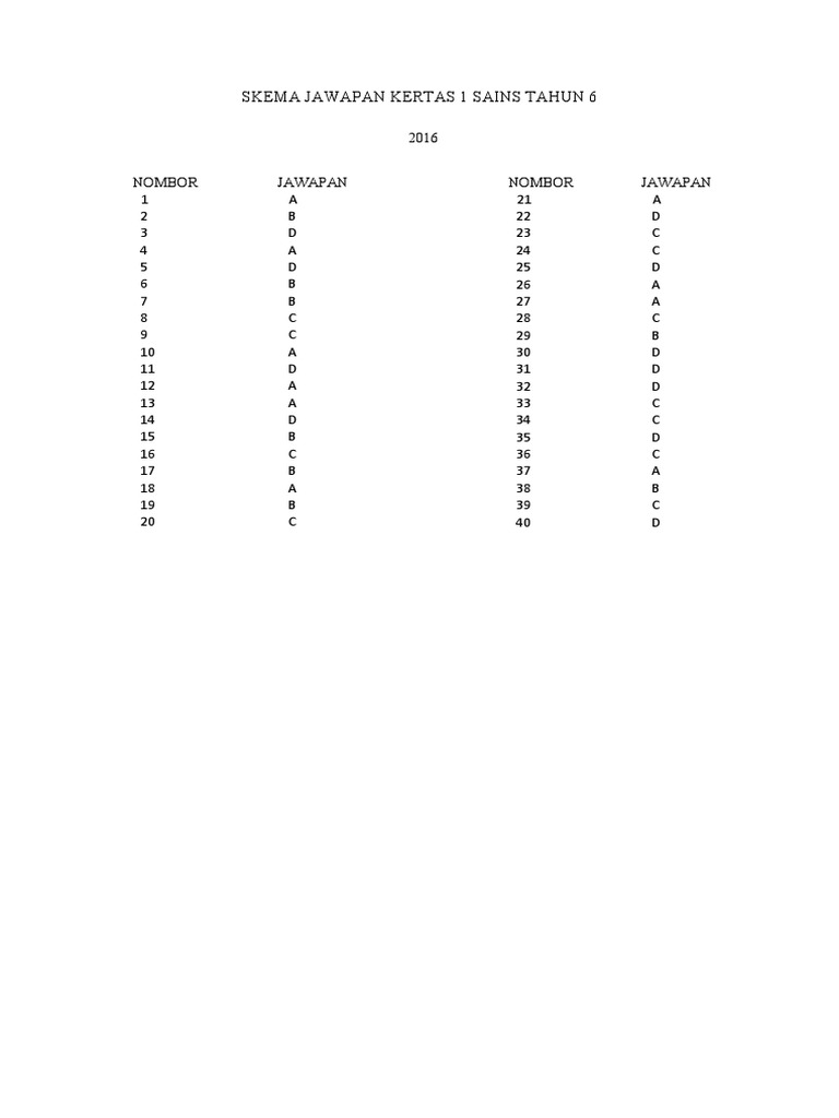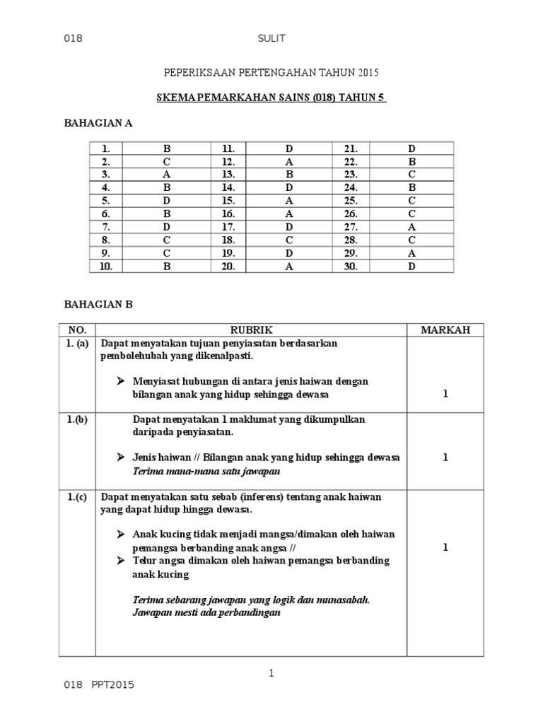 Skema Jawapan Sains Kertas 1 T6 Ppt 2016