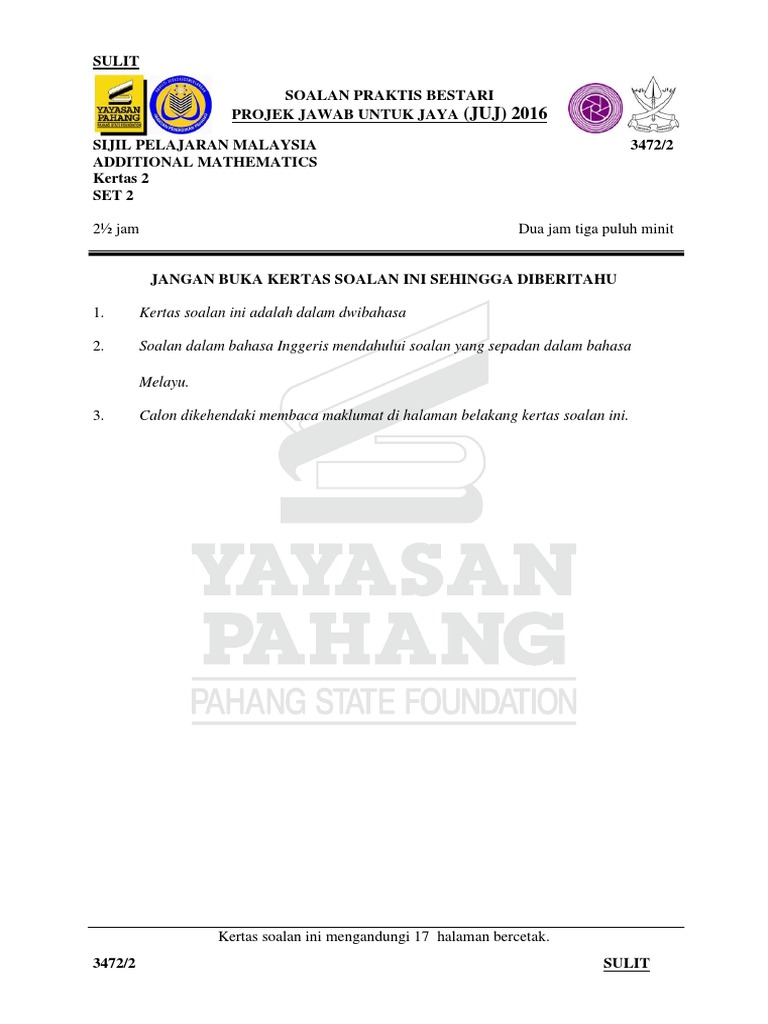 Matematik Tambahan Soalan Praktis Bestari Juj Spm 2018 Jawapan Pahang 2 Bumi Gemilang