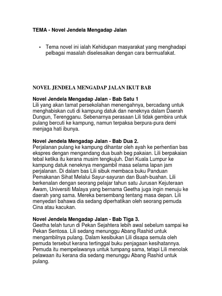 Novel Jendela Menghadap Jalan K4 Sinopsis Tema Persoalan Nilai Pengajaran Bumi Gemilang