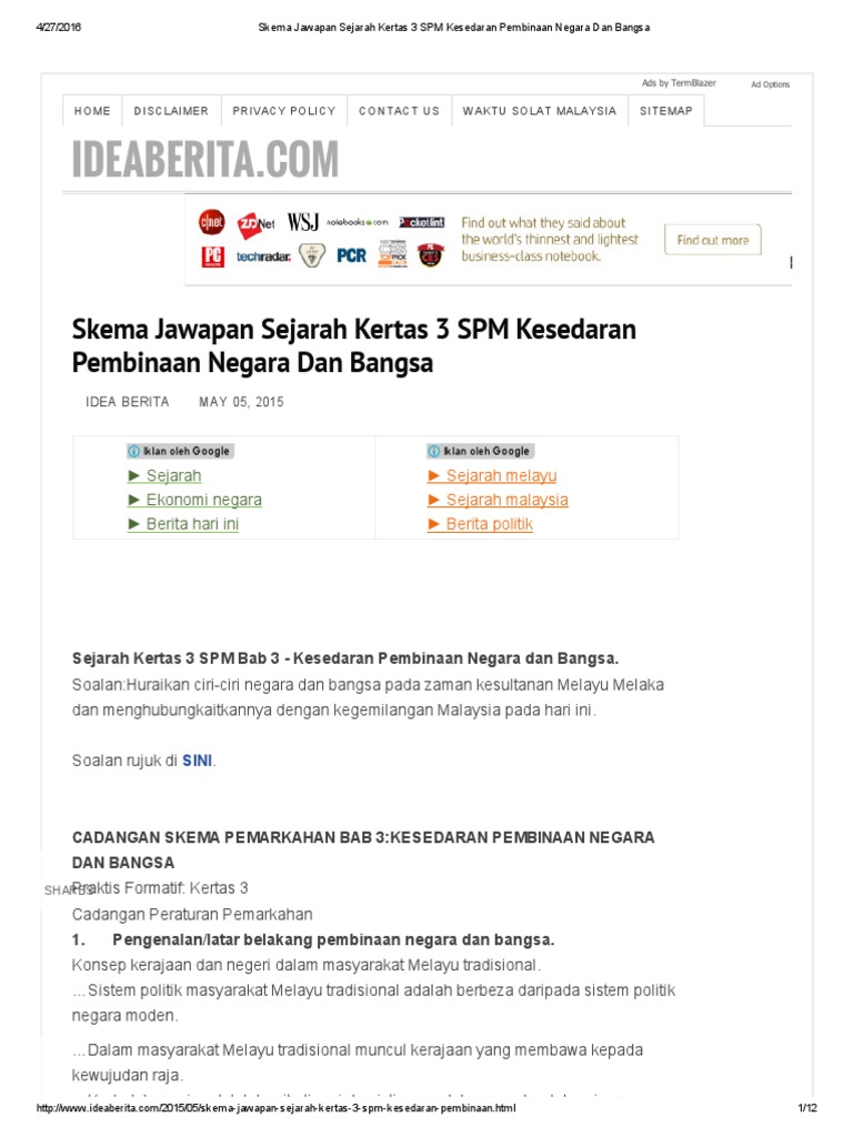 Skema Jawapan Sejarah Kertas 3 Spm Kesedaran Pembinaan Negara Dan Bangsa